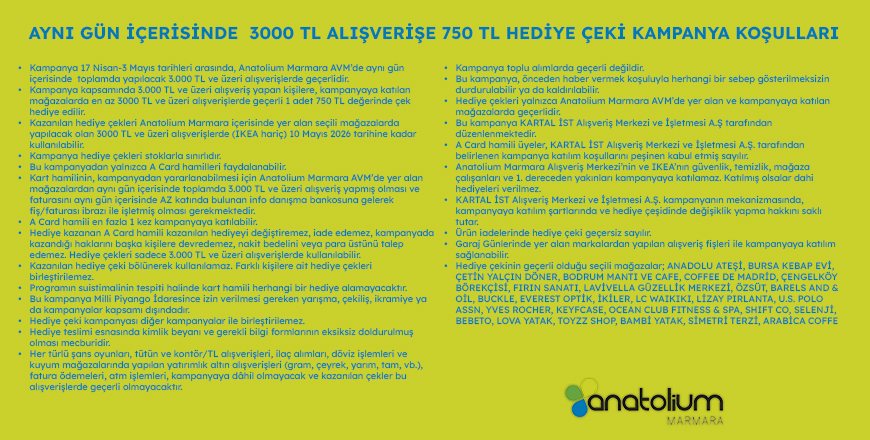 Alışverişin tüm renkleri Anatolium Marmara'da sizi bekliyor.